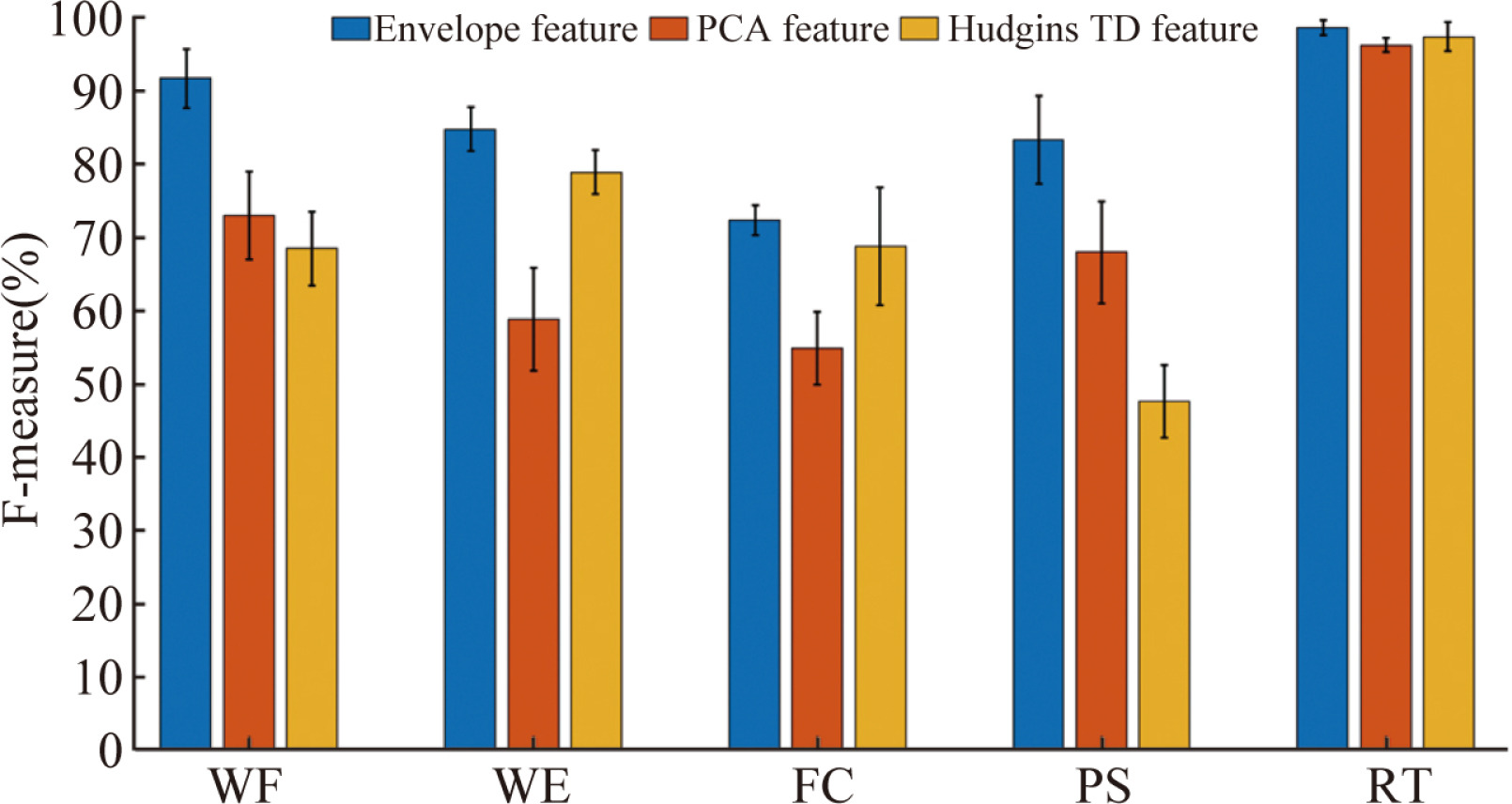 图9 各类手势下3种特征集的平均F-measure
