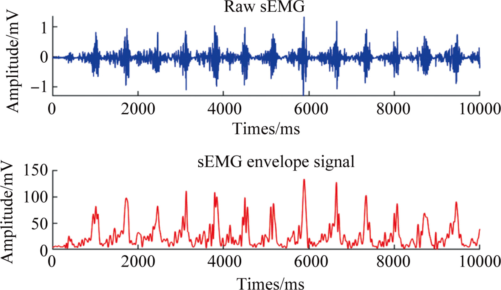 图2 原始肌电信号和包络肌电信号